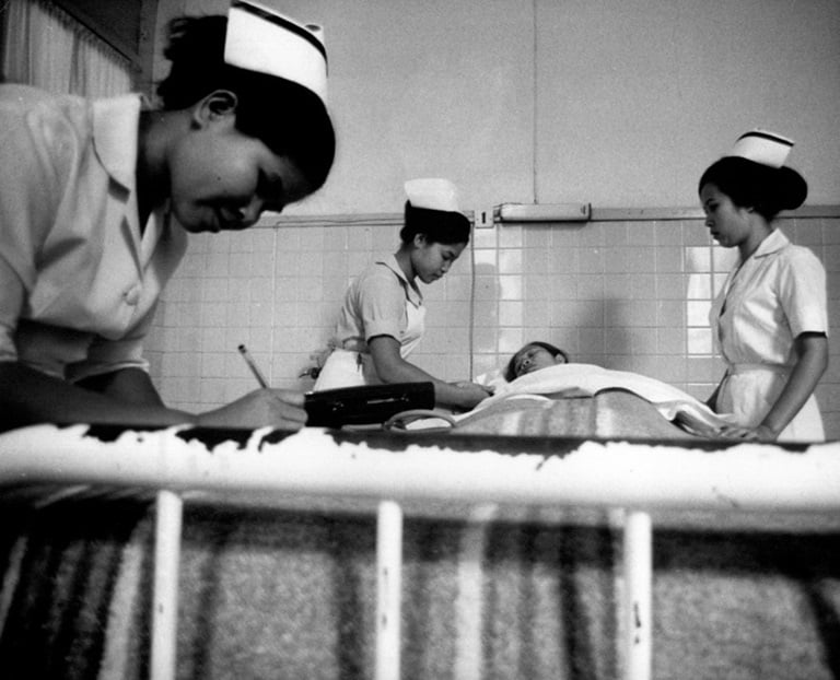 The School of Medicine for Assistant Medical Doctors is founded. In 1970, it became a full medical school, training doctors. Dr Roger Leclercq was transferred from the WHO Rural Health Development Programme to oversee its contribution to medical education. The School of Medicine, which later formed the University of Health Sciences in 2008, was a key achievement – for the first time it was possible for Lao doctors to receive full medical training at home. WHO invested heavily in promoting medical education in the region, and the number of doctors in the country increased from 49 in 1962 to 945 in 1990. With support from WHO, the Educational Development Centre for Health Professionals was established in 2011 within the University of Health Sciences to strengthen medical education and build faculty capacity.