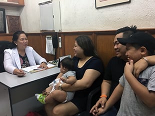 Saerrah, together with her family, consults with Dr Tetchie. Photo: WHO/F. Tanggol