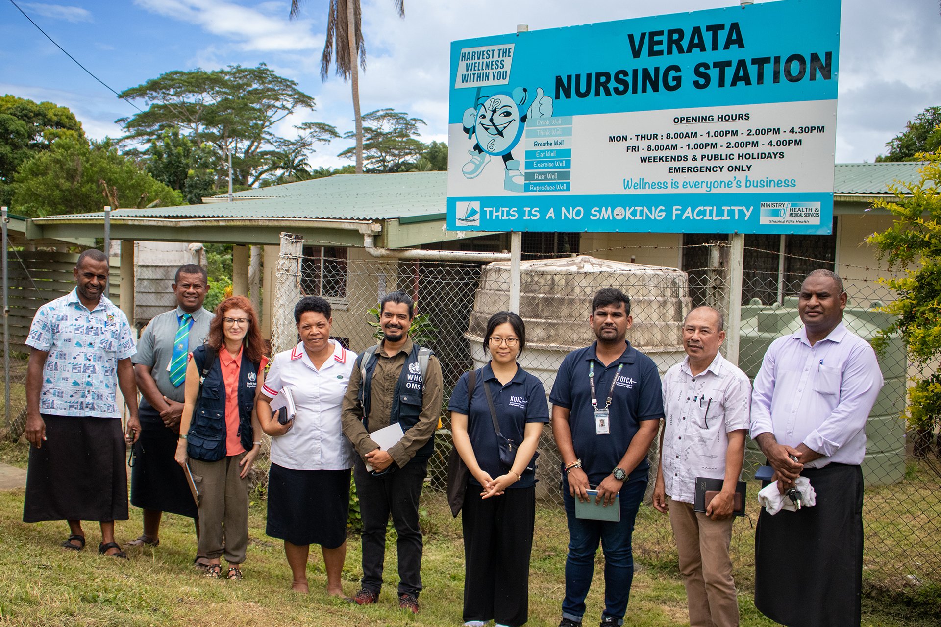 WHO, KOICA and nursing staff outside the Verata Nursing Station. Subdivisional Nursing Manager Sister Olivia Tuigau pictured fourth from left.
